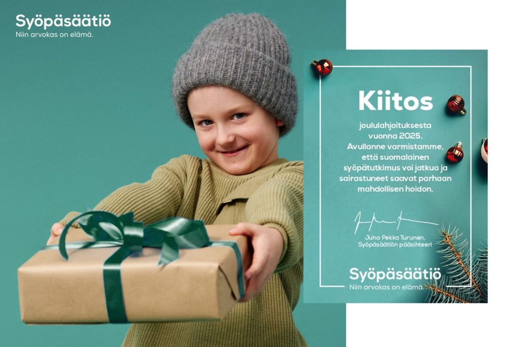 Kiitos joululahjoituksesta vuonna 2025. Avullanne varmistamme, että suomalainen syöpätutkimus voi jatkua ja sairastuneet saavat parhaan mahdollisen hoidon.